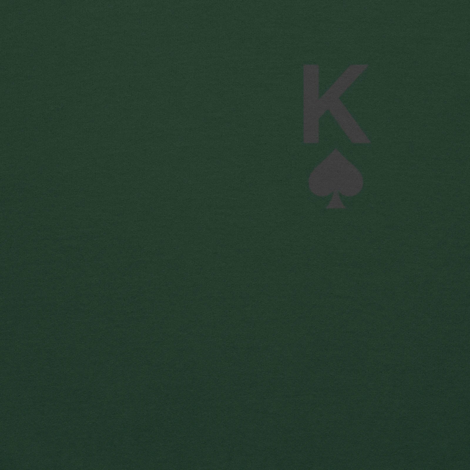 • Double-needle stitched collar, shoulders, armholes, cuffs, and hem