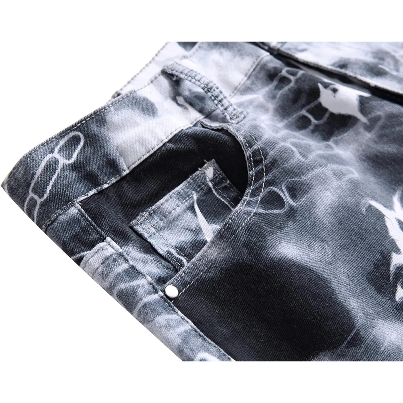 Men's Skinny Stretch Jeans Fashion Printed Slim Fit Jeans Comfort Flex Waist Casual Pants 🌴